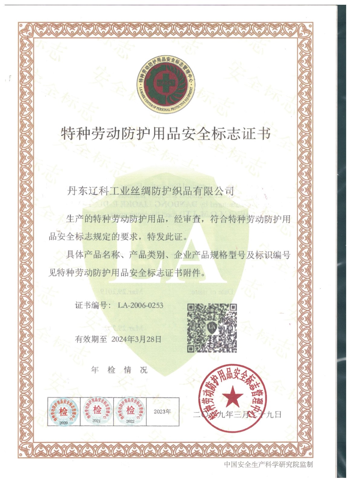 特种劳动防护用品安全标志证书